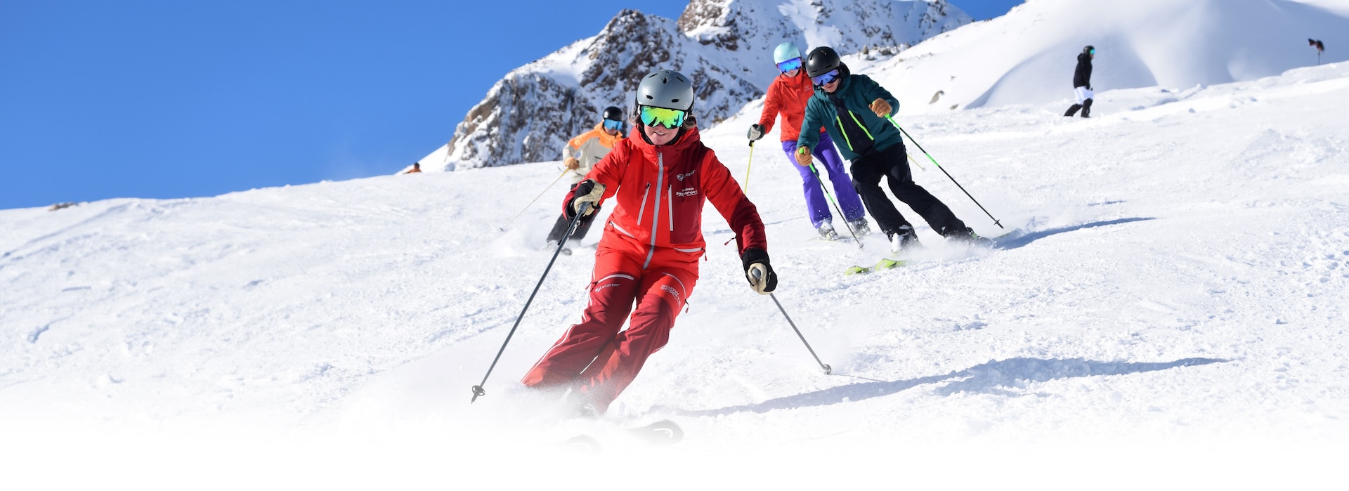 Explaining, presenting and repeating are the key elements for a good lesson. With our group lessons you have a great week for an affordable rate and you learn (better) skiing in a few days!